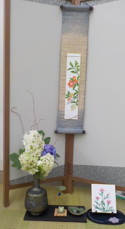 庭に咲いていたお花を生けてくださり、たてじくに見立てた季節の花の絵も飾ってくださいました。