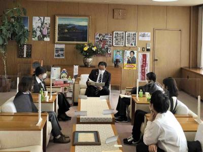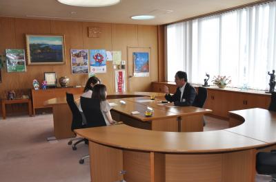 「特定非営利活動法人チャイルドラインとんだばやし」のみなさんが来庁されました。今回来庁されたみなさんは、18才までの子どもを対象に、電話やチャットを使って子どもの声を聴き、こころをうけとめる活動に20年間取り組まれています。近年では、小中学生からの相談やチャットを使った相談も増えてきているそうです。