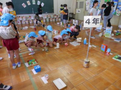 富田林小学校の作品展を見に行きました。小学校のお兄ちゃんお姉ちゃんの作品に「すごーい!」「これかわいい♡」「貯金箱になってるんだって」と興味津々で見ていました。幼稚園で制作した燈路も作品展に飾っていただき、自分たちの燈路を見て喜んでいる子どもたちでした。