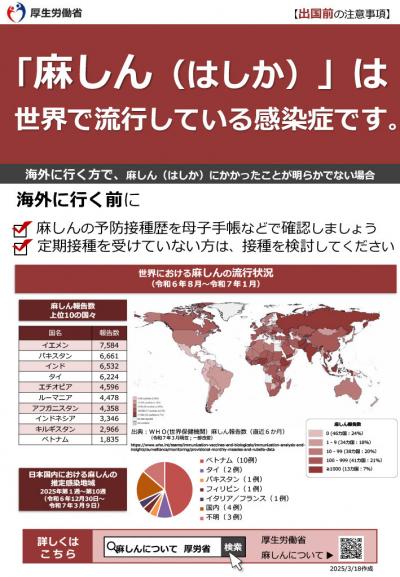 厚生労働省ウェブサイト麻しん(はしか)について<外部リンク>