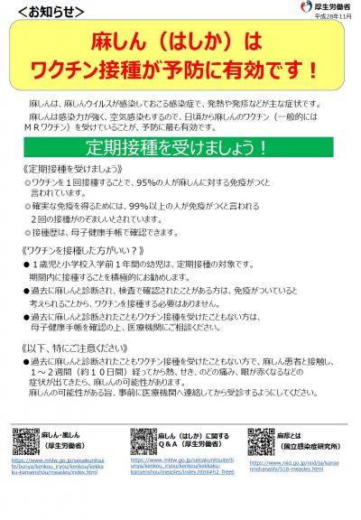 麻しん(はしか)の予防について
