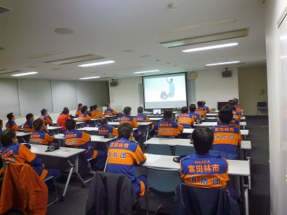 受講した団員は、応急手当の必要性のほか、重篤な傷病者の救命にかかわる心肺蘇生法に加え、AED(自動体外式除細動器)の取扱い等を熱心に受講し、実技主体の有意義な講習となりました。