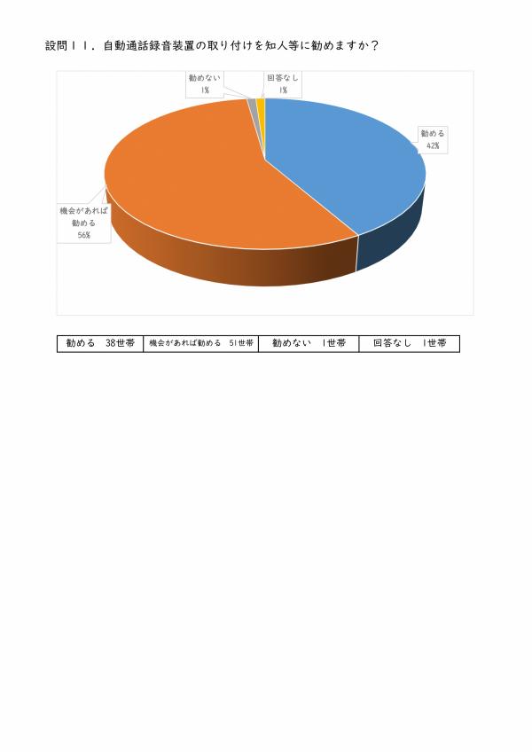 このような中、取付けによる効果・検証を行い、今後の防犯対策事業に役立てることを目的にアンケートを実施しました。アンケート結果につきましては、次のとおりです。