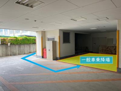 ご高齢の方や障がいのある方、お怪我をされている方等、お身体が不自由であったり歩行が困難な来庁者の方で長い距離を歩くのが難しい場合は、下図にある一般車乗降場をご利用いただけます。台数には限りがございますので、より多くの方がご利用いただくために長時間の駐停車はご遠慮ください。